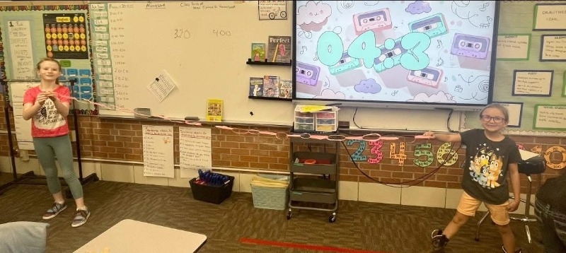The third grade class completed a fun challenge to see who could make the longest paper chain. They could only use one piece of paper, one pair of scissors, and one clue stick. What a great way to test their teamwork abilities!